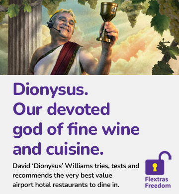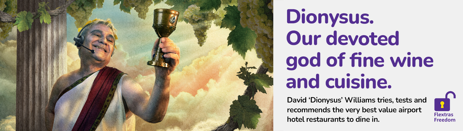 Dionysus - Our devoted god of fine wine and cuisine David 'Dionysus' Williams tries, tests and recommends the very best value airport hotel restaurants to dine in - campaign May 2022