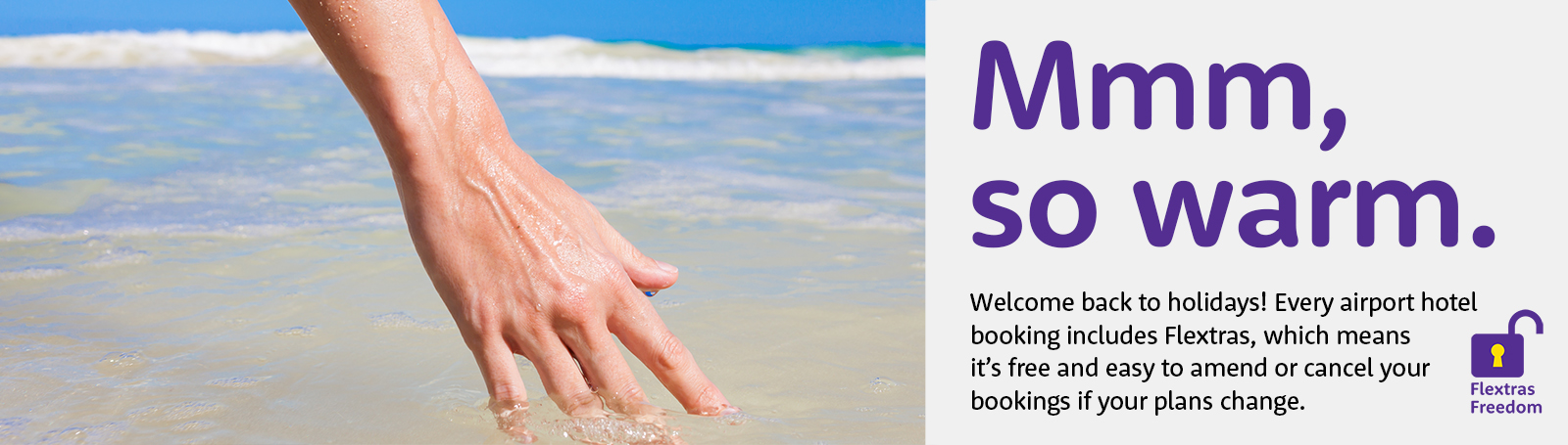Welcome back to holidays! Every airport hotel booking includes Flextras, which means it's free and easy to amend or cancel your booking if your plans change - campaign June 2021