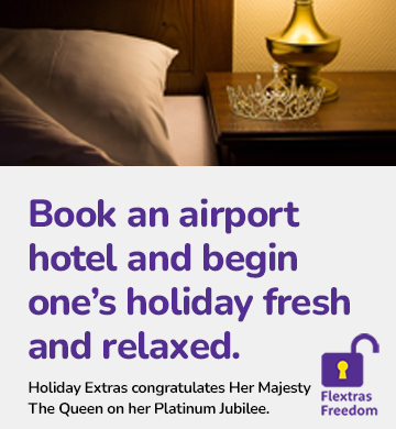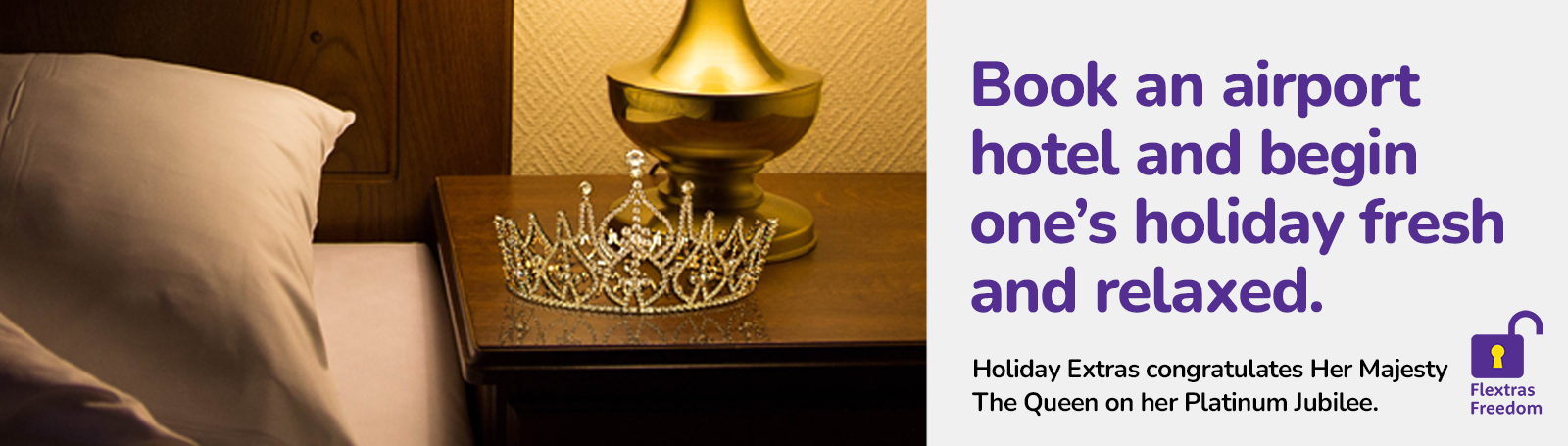 Book an airport hotel and begin one's holiday fresh and relaxed - Holiday Extras congratulates Her Majesty The Queen on her Platinum Jubilee - campaign June 2022