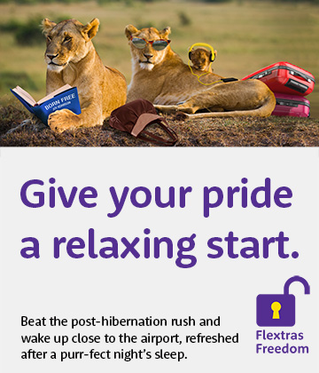 Give your pride a relaxing start. Beat the post-hibernation rush and wake up close to the airport, refreshed after a purr-fect night's sleep - campaign September 2021