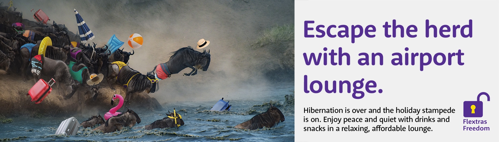 Holiday hibernation is over and the holiday stampede is on! Escape the herd with an airport lounge & enjoy peace and quiet with drinks & snacks in a relaxing, affordable lounge - campaign September 2021