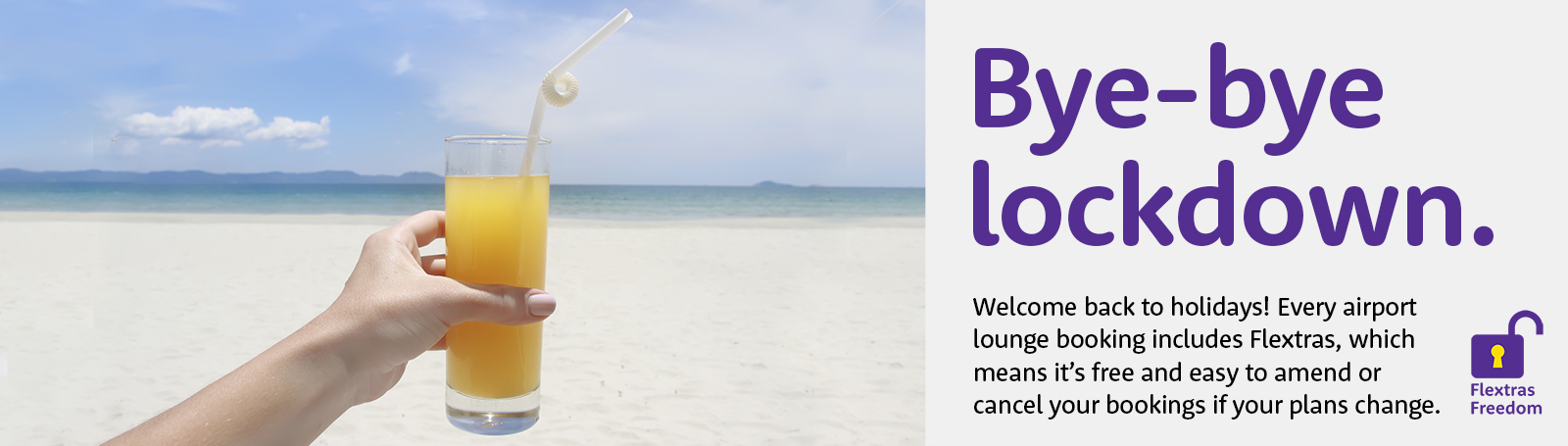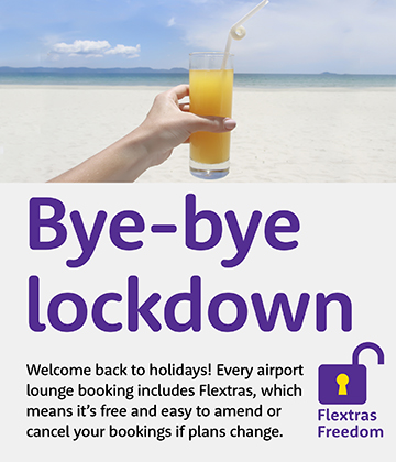 Bye-bye lockdown & welcome back holidays! Every airport lounge booking includes Flextras, which means it's free and easy to amend or cancel your booking if your plans change - campaign May 2021