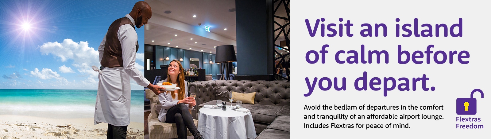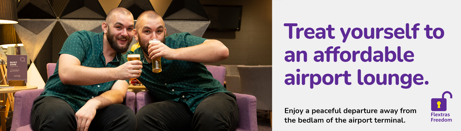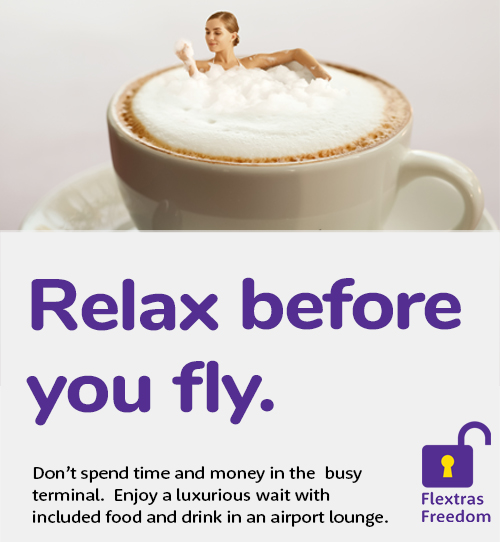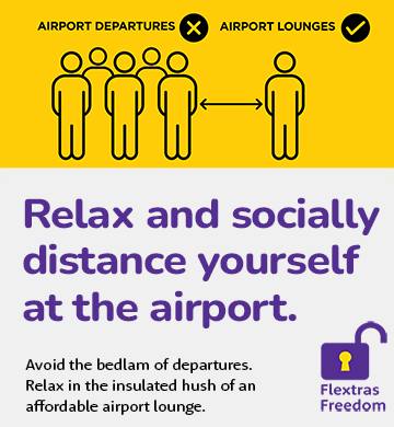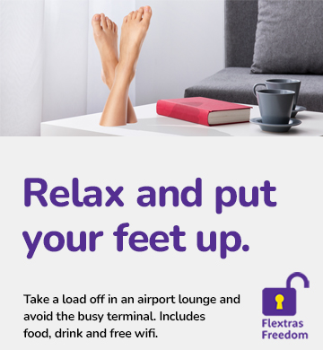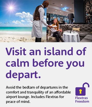 Visit an island of calm before you depart. Avoid the bedlam of departures in the comfort and tranquillity of an affordable airport lounge, bookings include Flextras - campaign August 2021