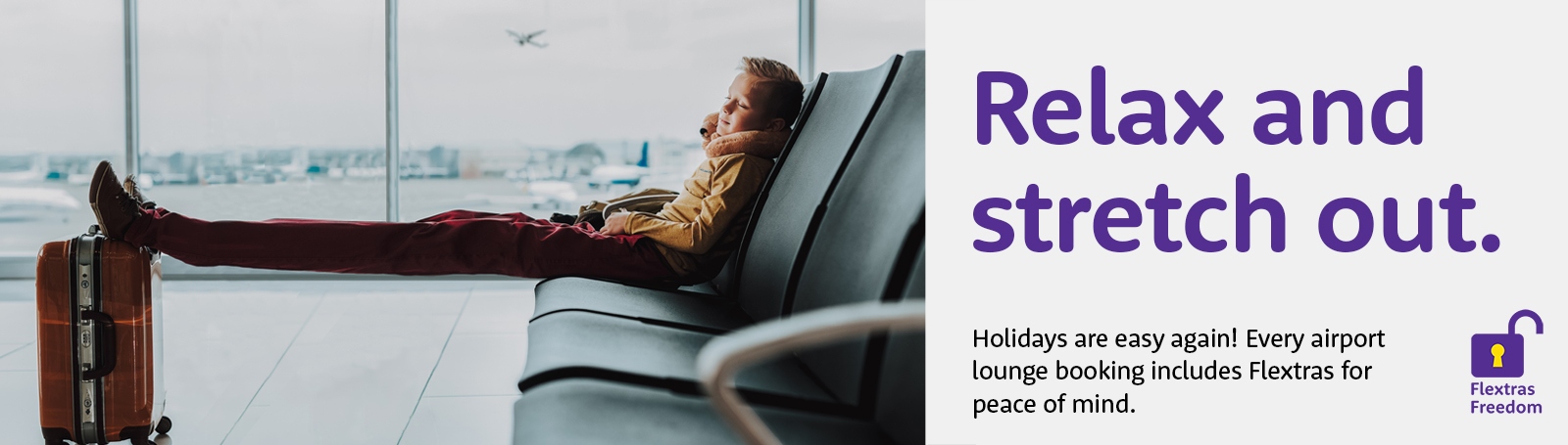 Holidays are easy again so relax and stretch out! Every airport lounge booking includes Flextras for added peace of mind - campaign October 2021