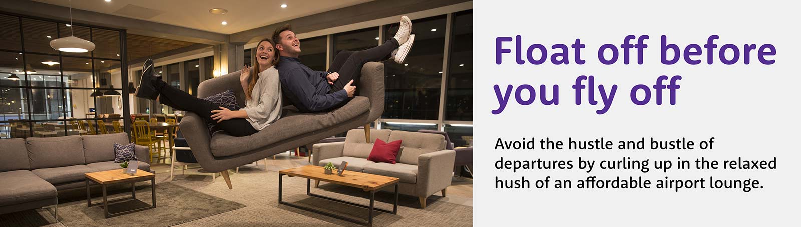 Float off before you fly off! Avoid the hustle and bustle of departures by curling up in the relaxed hush of an affordable airport lounge - campaign June/July 2021