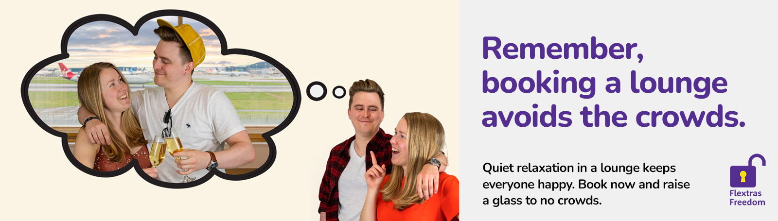 Remember, booking an airport lounge avoids the crowds. Enjoy quiet relaxation that keeps everyone happy - campaign August 2022
