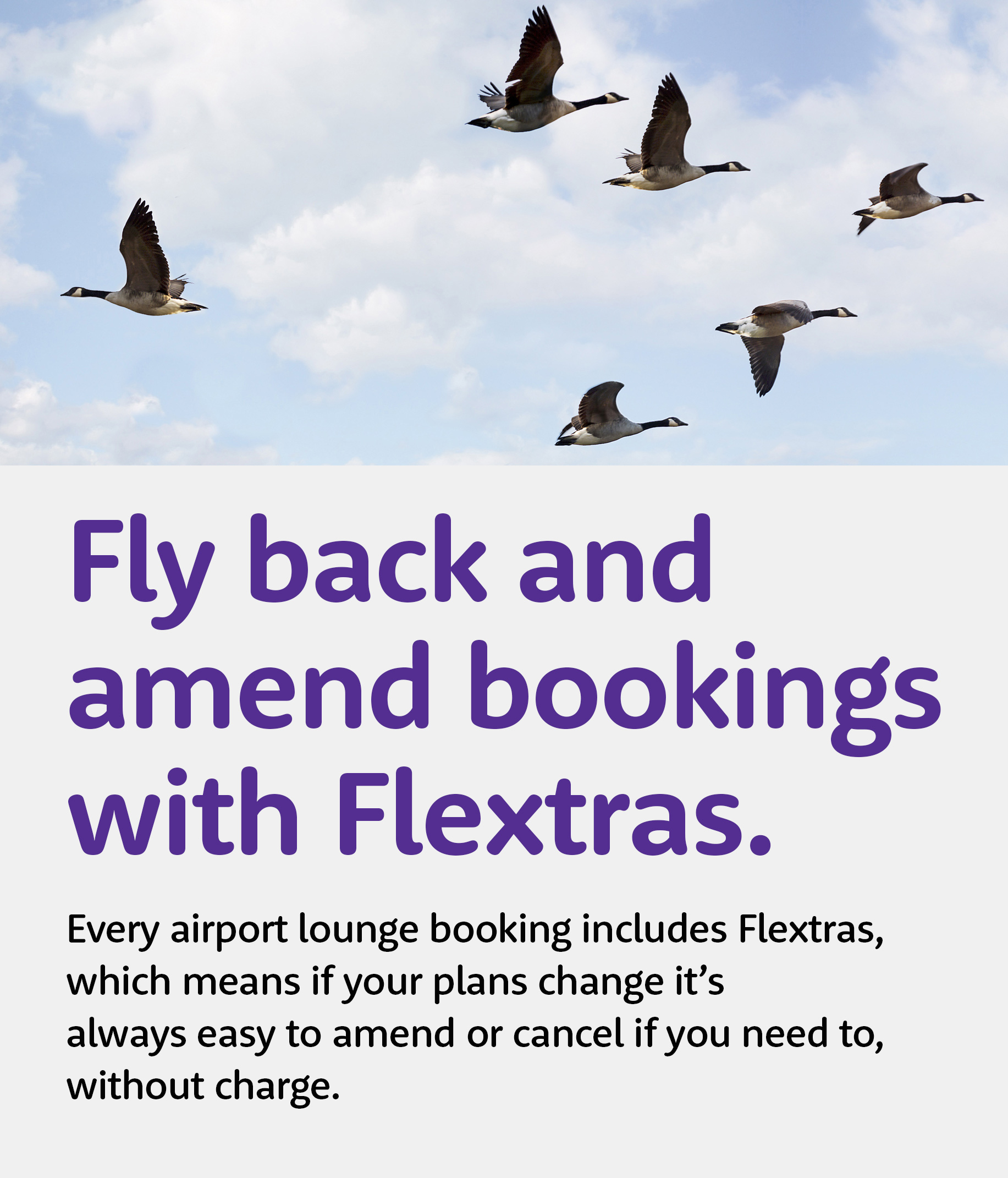 Fly back and amend bookings with Flextras. Every airport lounge booking includes Flextras should your plans change - campaign June 2021