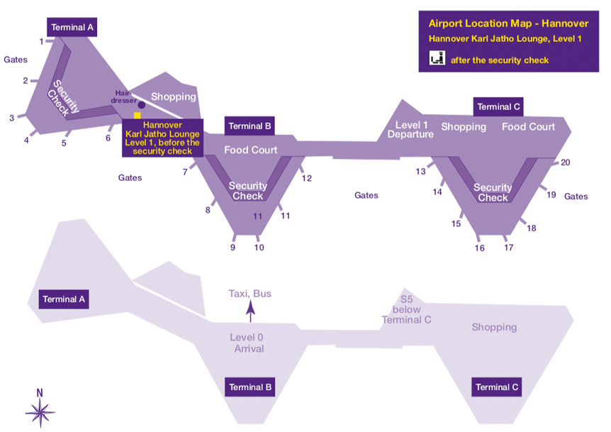 Die Hannover Karl Jatho Lounge, Landside ist täglich von 05:00 bis 21:00 Uhr geöffnet.