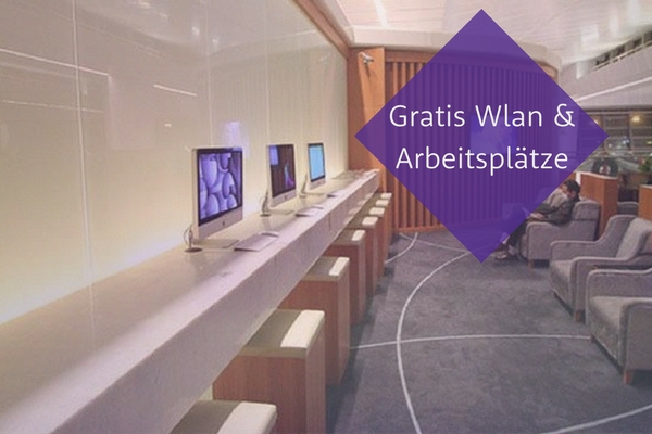 In Airport Lounges seid Ihr produktiv! Ladestationen & PC-Arbeitsplätze zum Erledigen dringender Aufgaben stehen zur kostenlosen Nutzung bereit.