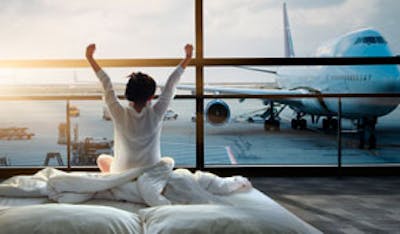 • Flughafenhotels versprechen Erholung vor einem strapaziösen Reisetag. Eine übernachtung im Flughafenhotel sorgt für eine gute Mütze Schlaf und ein sättigendes Frühstück — ohne den allzu bekannten Stress, nicht rechtzeitig am Flughafen anzukommen.