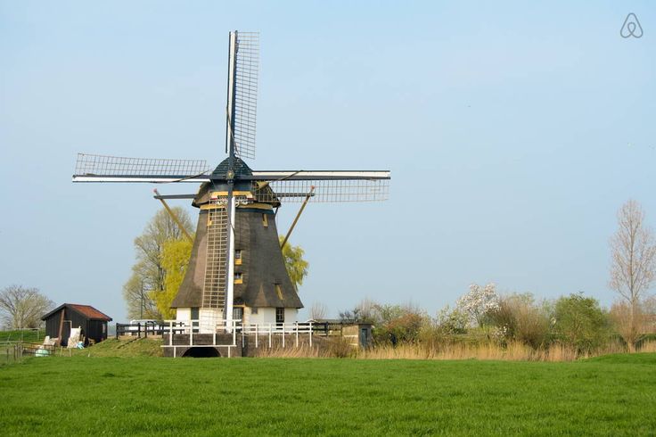 Grüne Felder, Schafherden und herrliche Weite. Nicht weit weg von Amsterdam kann man über Airbnb in einer idyllischen Windmühle übernachten. Die Kombination aus rustikalen Holzbalken und moderneren Möbeln in kräftigen Farben machen das Heim gemütlich. Vor allem Familien verbringen hier gerne ihre Ferien und möchten das Haus mieten.