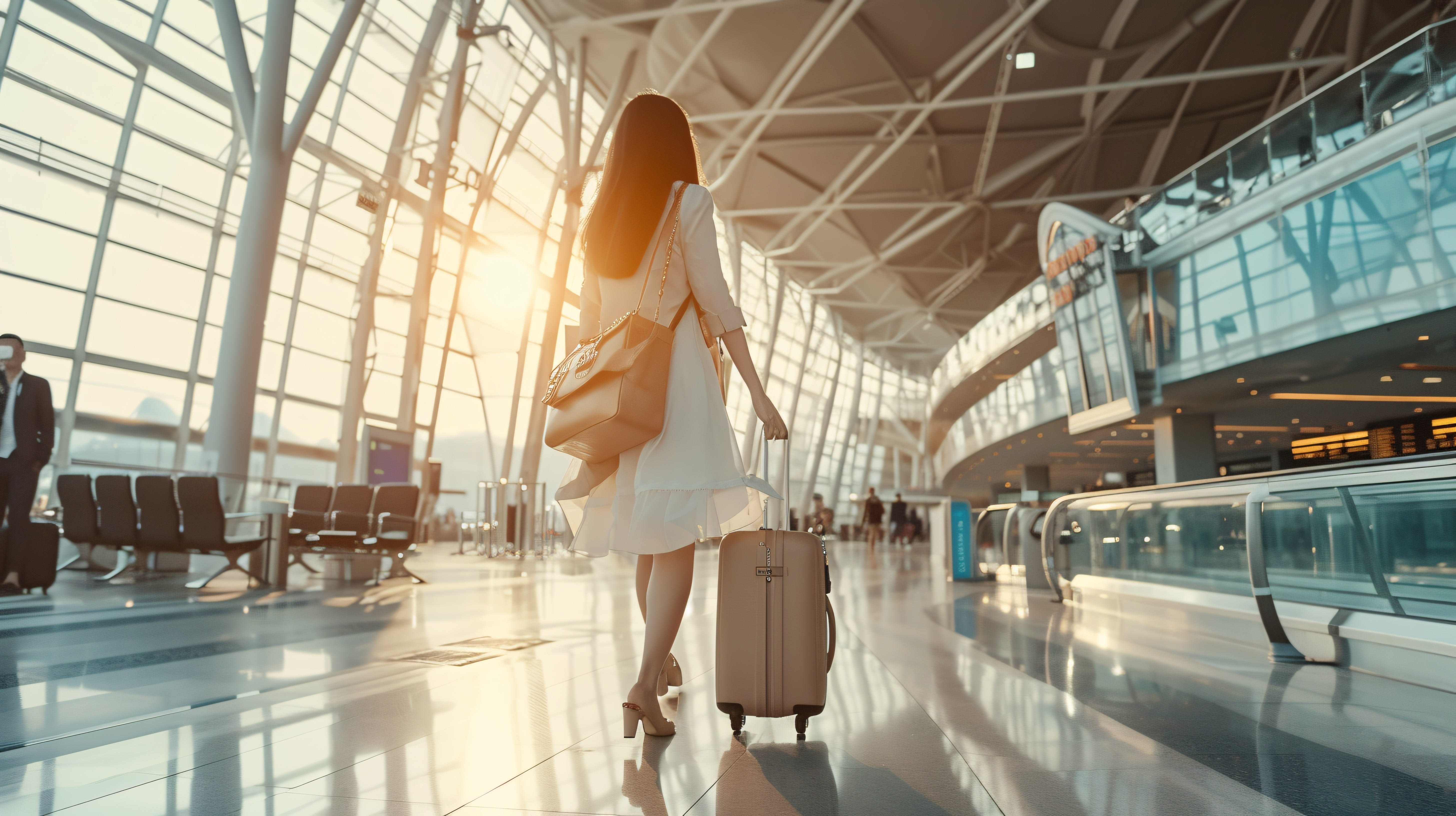Frau mit Koffer am Flughafen Frau mit Koffer am Flughafen