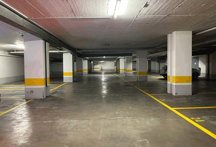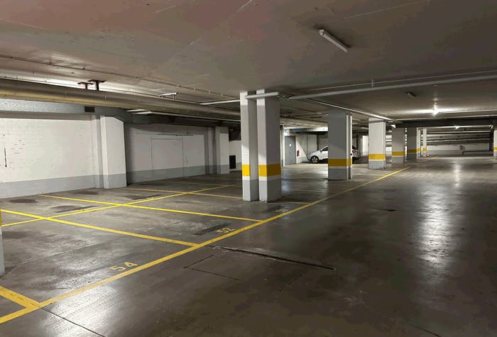 Die Tiefgarage ist abgeschlossen, beleuchtet, 24 Std. besetzt, Ein- und Ausfahrt videoüberwacht. Der Zugang ist nur mit Mitarbeiter möglich. Es finden regelmäßig Kontrollgänge statt.