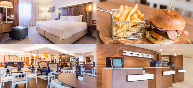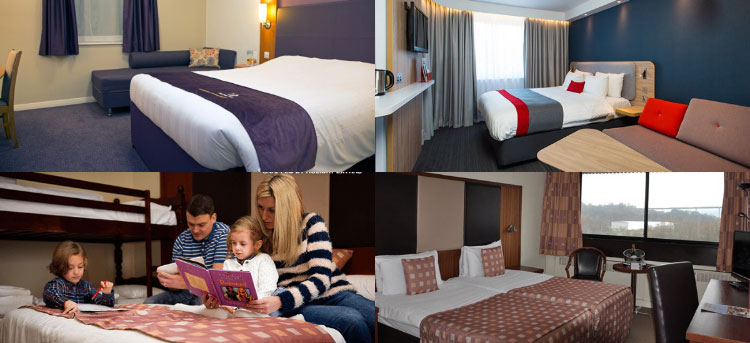 Premier Inn (top left), Normandy (bottom left), Holiday Inn Express (top right), Erskine Bridge (bottom right