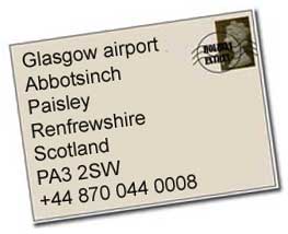 Glasgow airport is about eight miles from the city centre. If you are coming by car it is about 20 minutes from junction 28 of the M8. For detailed directions visit our directions page.