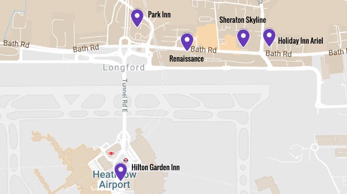 Take a look at our map below to see where our top 5 closest Heathrow Terminal 2 hotels are and find one that suits you for your journey. As you can see, there are many fantastic hotels on Bath Road Heathrow located within easy reach of T2.