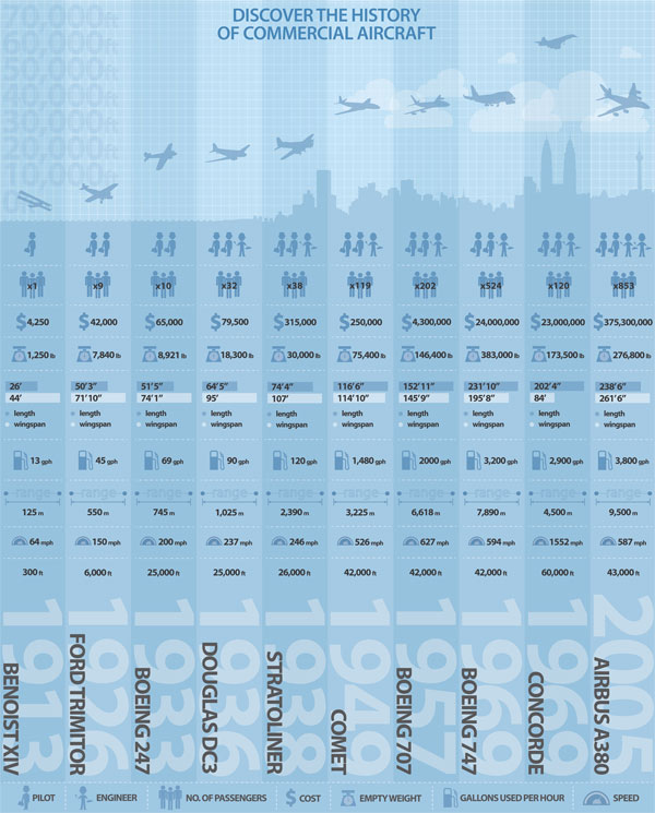 Have you ever wondered when you're sitting "comfortably" in your plane seat thousands of feet up in the sky, how the commercial aircraft developed or how people were flying around the globe years before you? Well, you'd think twice about complaining about the lack of leg room had you seen some of the earliest planes. It was only in the early 1900's that planes started being used commercially and even then, the first commercial aircraft the Benoist XIV could only carry one passenger - a far cry from the hundreds of people you will share a plane with going on holiday today.