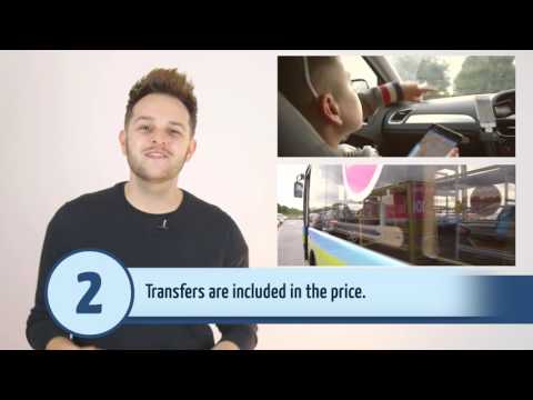 Head to the nearest bus stop and hop on the included shuttle to the terminal. Shuttles run every 15 minutes, 24 hours a day, to all terminals.