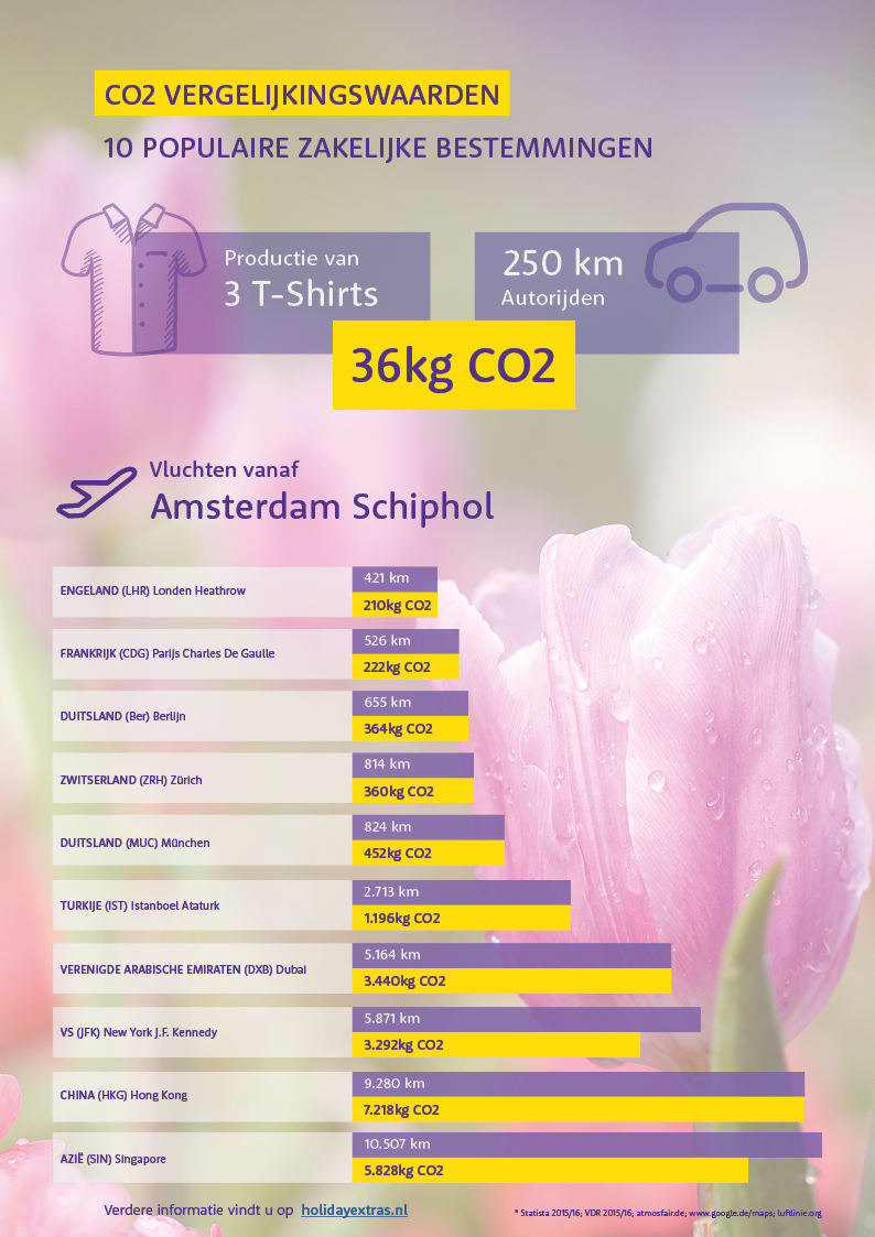 Hoeveel CO2 wordt er per persoon tijdens een vlucht uitgestoten? Wij hebben het voor u uitgezocht voor een aantal zakelijke en vakantiebestemmingen.