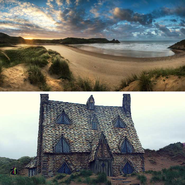 One of Wales' best surfing beaches and its stunning expanse of thrashing ocean, sands and dunes formed the backdrop for Shell Cottage in the two Deathly Hallows movies. Although faithfully recreated at the foot of the dunes, sadly for Potter fans it was removed when filming ended. Freshwater West can also be seen in the Russell Crowe film, Robin Hood.