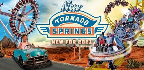 Embark on a journey to the spectacular Tornado Springs, a 1950s-themed American resort town caught in the thrilling embrace of tornadoes, storms, and twisters.