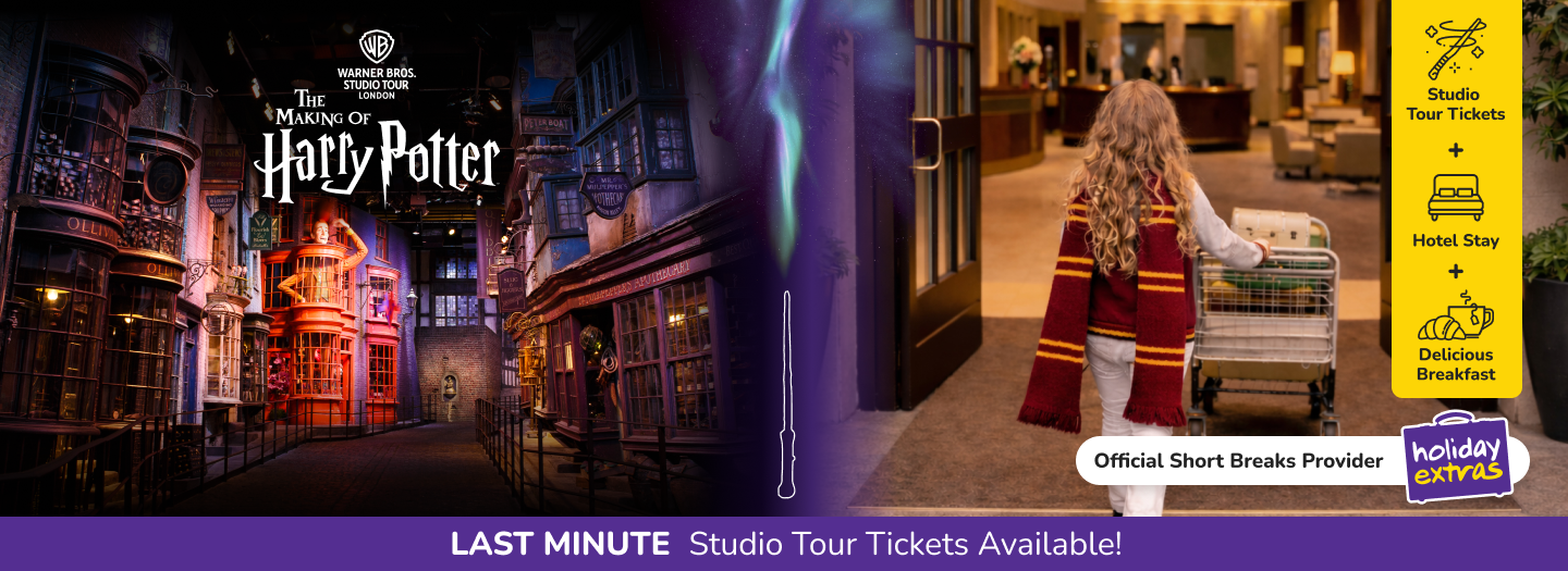 Last-minute tickets to the Warner Bros. Studio Tour London can be hard to find due to high demand, but our hotel and ticket packages often have availability even when day tickets are sold out. These packages include Studio Tour tickets, breakfast, and an overnight stay at a nearby hotel—making them an ideal choice if you’re planning a spontaneous trip.